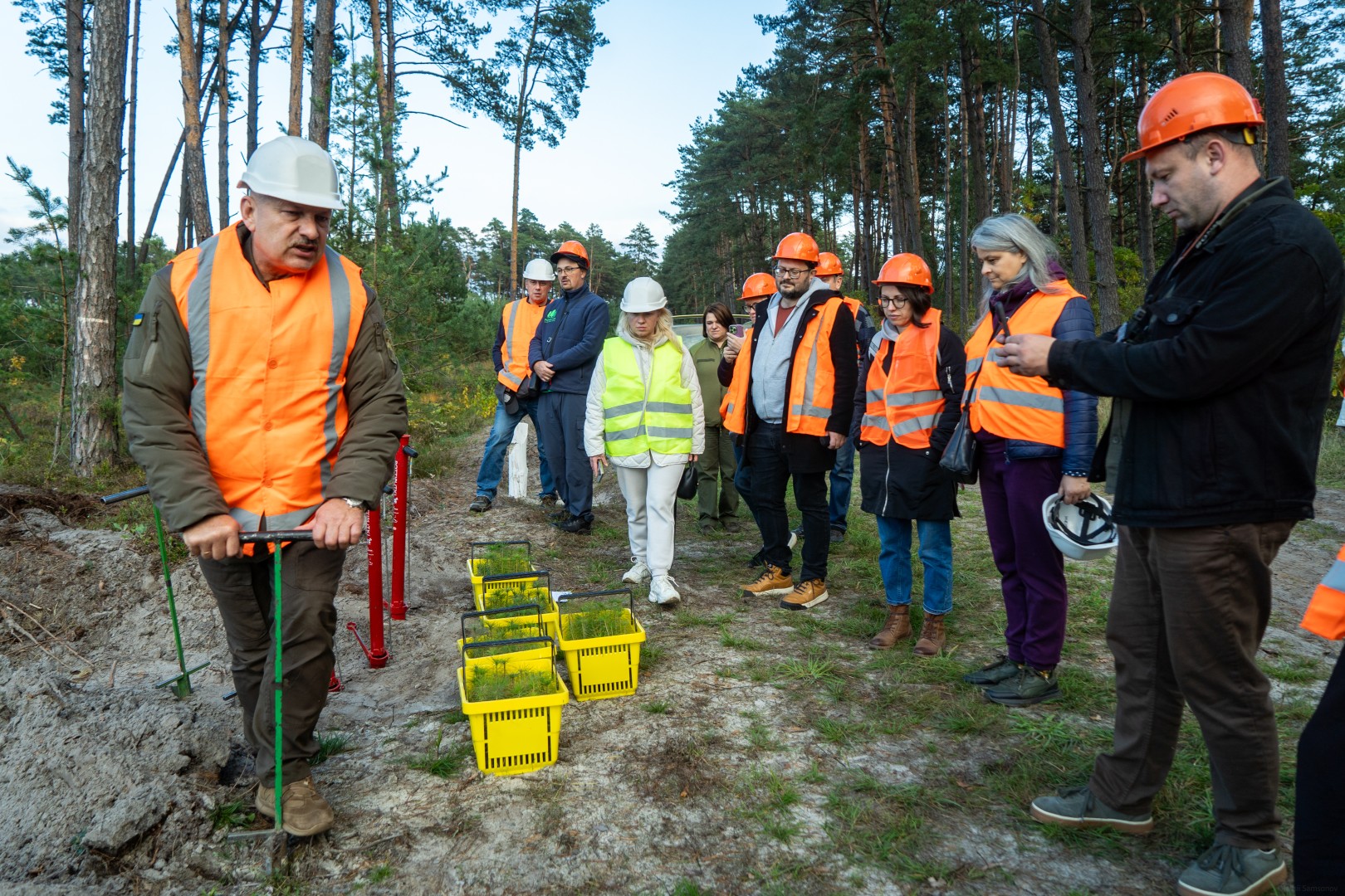 Фінал першого дня – практичний. Учасники медіатуру власноруч садять дерева на одній із ділянок. Сіянці із закритою кореневою системою, спеціальні інструменти, інструктаж. Кожен висаджує свій майбутній внесок у поглинання CO2.