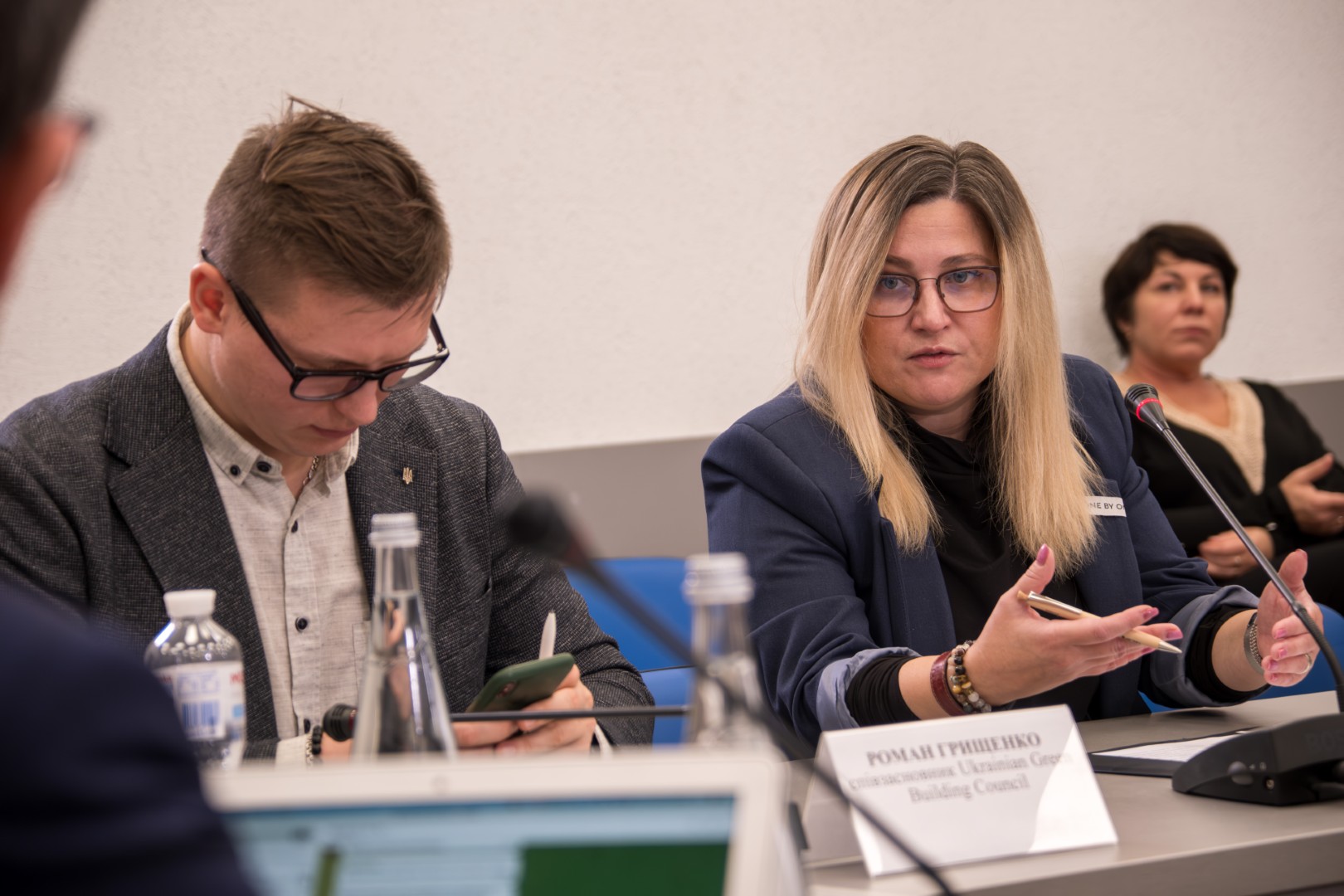 The topic of integrating sustainable approaches into reconstruction was continued by Anna Akermann, an analyst on green reconstruction in Ukraine. She emphasised that the transition to sustainable standards requires consideration of the entire life cycle of a building, which minimises its environmental footprint.