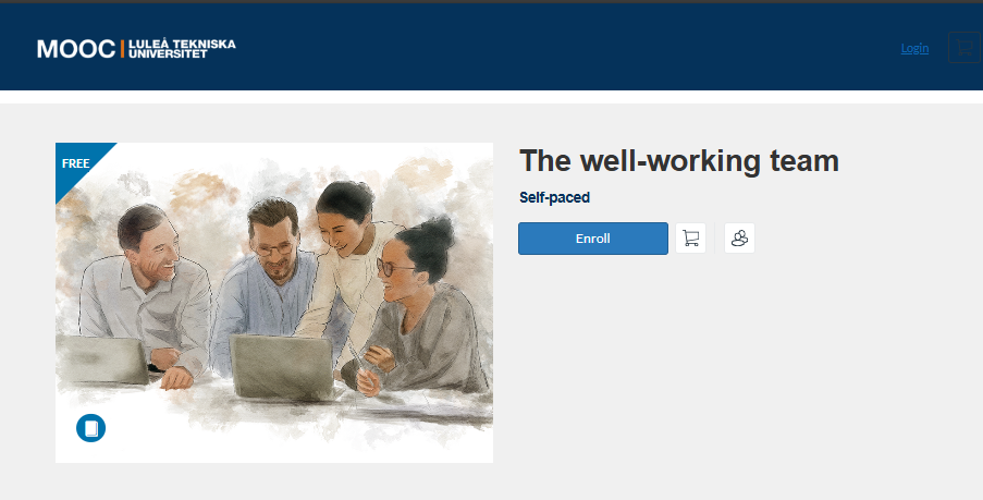Усіх зацікавлених у питаннях ефективної співпраці запрошуємо пройти безкоштовний онлайн-курс (MOOC) «The Well-Working Team» від Технологічного університету Лулео. Курс охоплює групову динаміку, комунікацію, зворотний зв'язок та коучинг. Тривалість — 4 тижні (близько 5 годин на тиждень), мова — англійська, формат — онлайн із вільним графіком.
